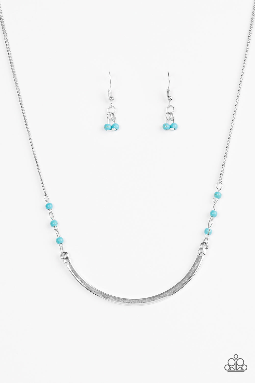 Dainty turquoise beads give way to a bowing silver bar, creating a handcrafted, artisanal pendant below the collar. Features an adjustable clasp closure.