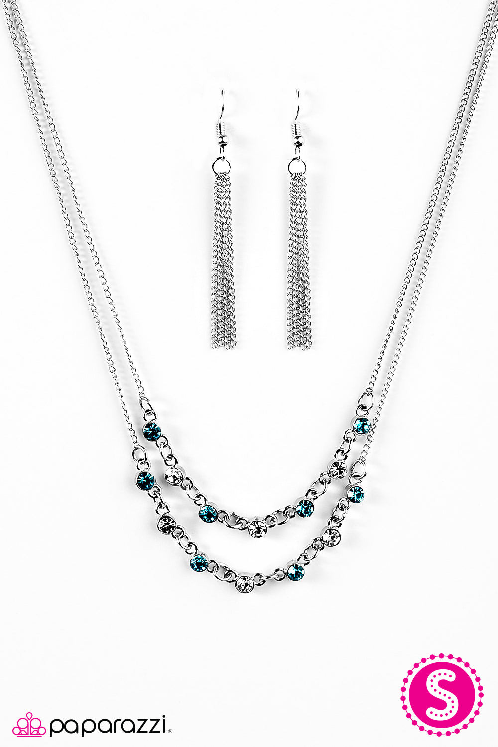 Two shimmery silver chains give way to layered rows of dazzling blue and white rhinestones. The mixture of chain and radiance creates a fierce display. Features an adjustable clasp closure.